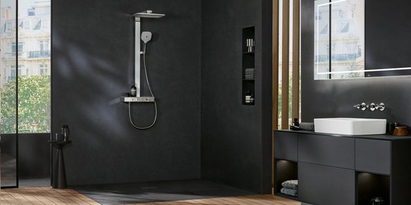 Wahlweise verfügbar in klassisch glänzendem Chrom und im aktuellen tiefschwarzen Matt Black, setzt die neue Duschkollektion Infinity Showers besondere Akzente: Während sie sich in Chrom harmonisch in jede Badgestaltung einfügt, präsentiert sich Matt Black selbstbewusst markant und stilprägend im modernen Badezimmer.
